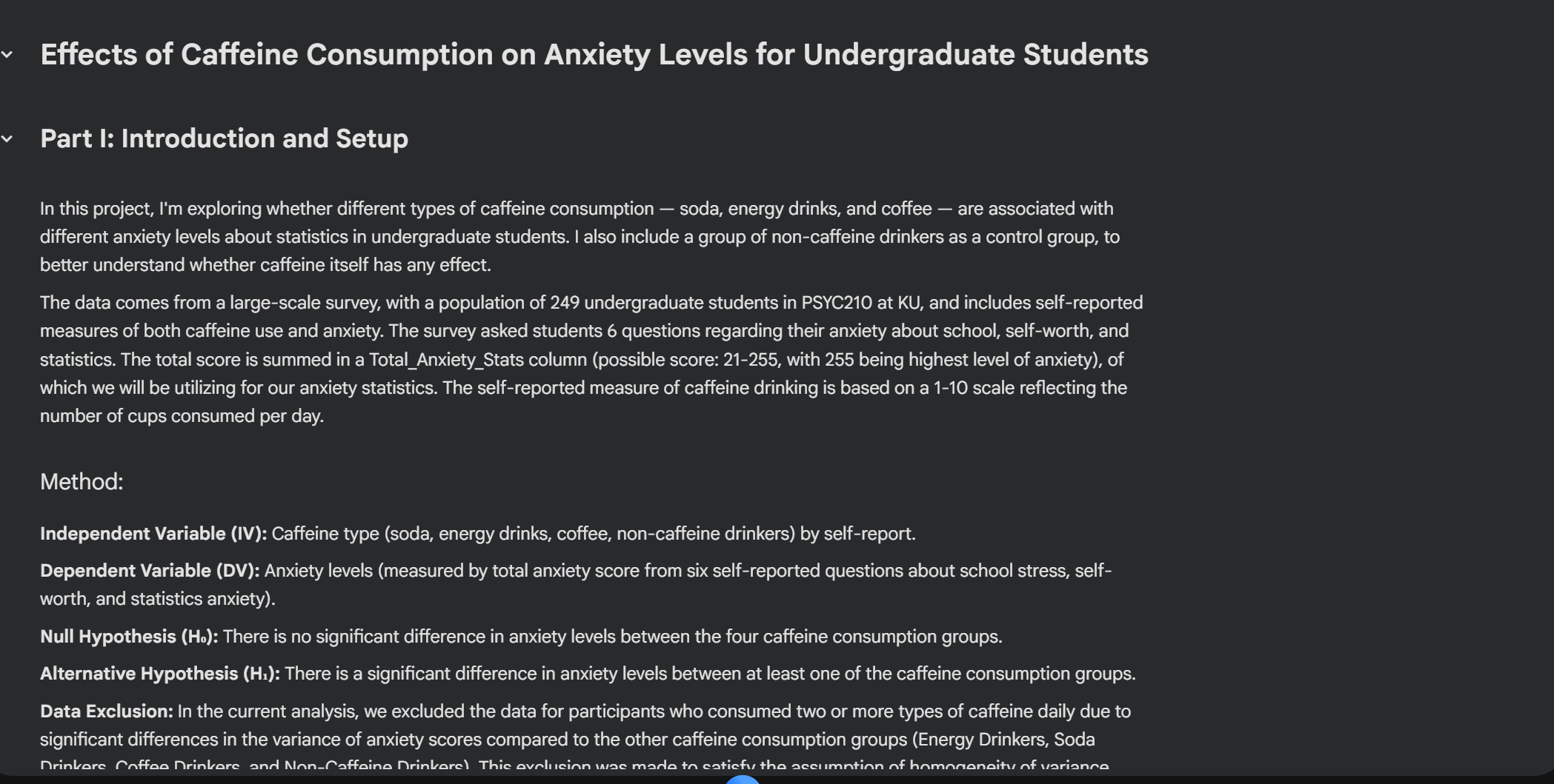 Analysis of how different types of caffeine consumption relate to anxiety in undergraduate students.